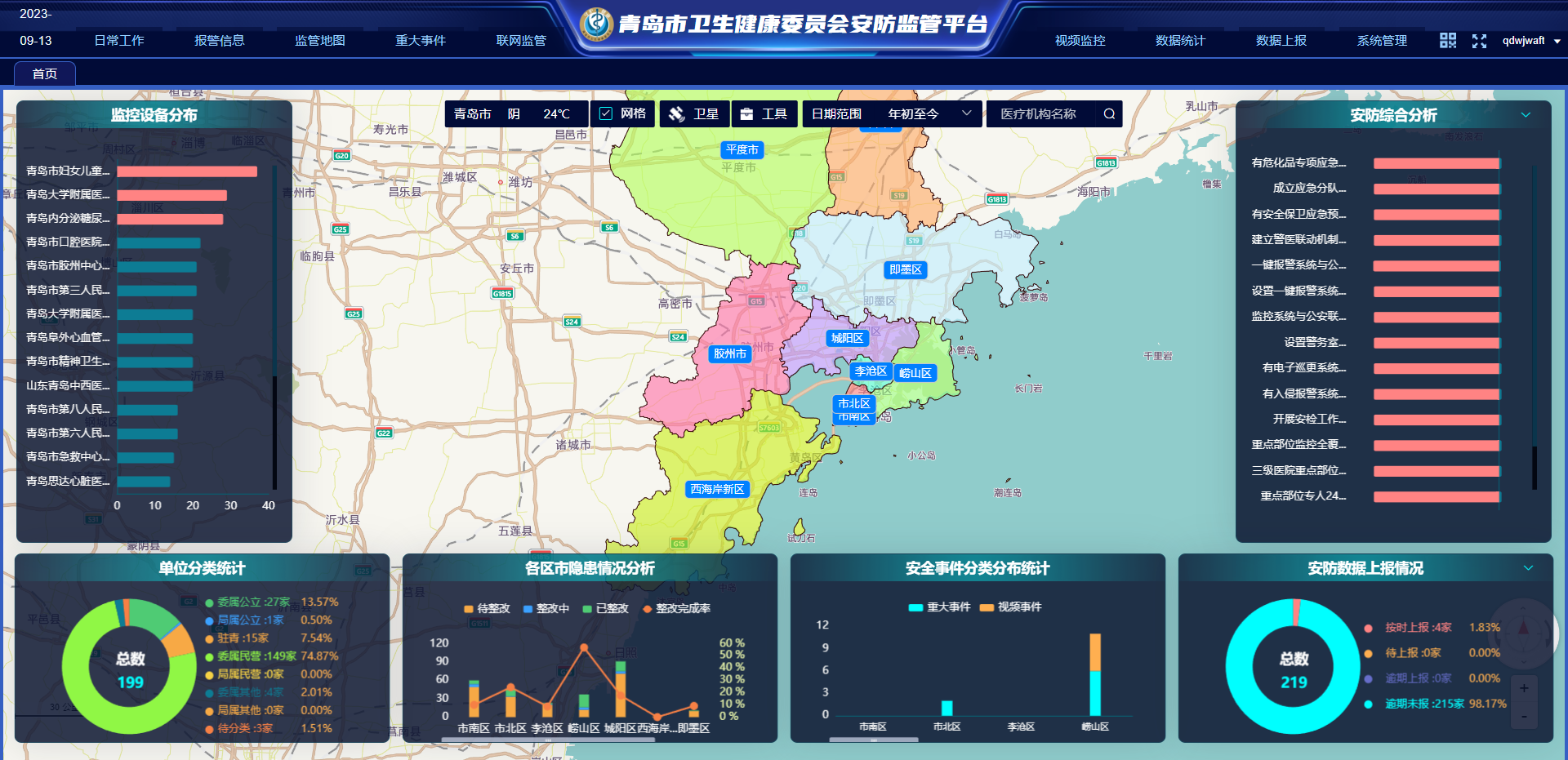 2022年7月,峻海物聯(lián)為青島市衛(wèi)生健康委員會建設(shè)“智慧消防綜合監(jiān)管平臺”,在青島市疾控中心設(shè)立值守中心,將青島市214家重點監(jiān)管醫(yī)院納入了綜合監(jiān)管范疇,實現(xiàn)了對衛(wèi)健消防安全領(lǐng)域的“一張圖”實時監(jiān)管。